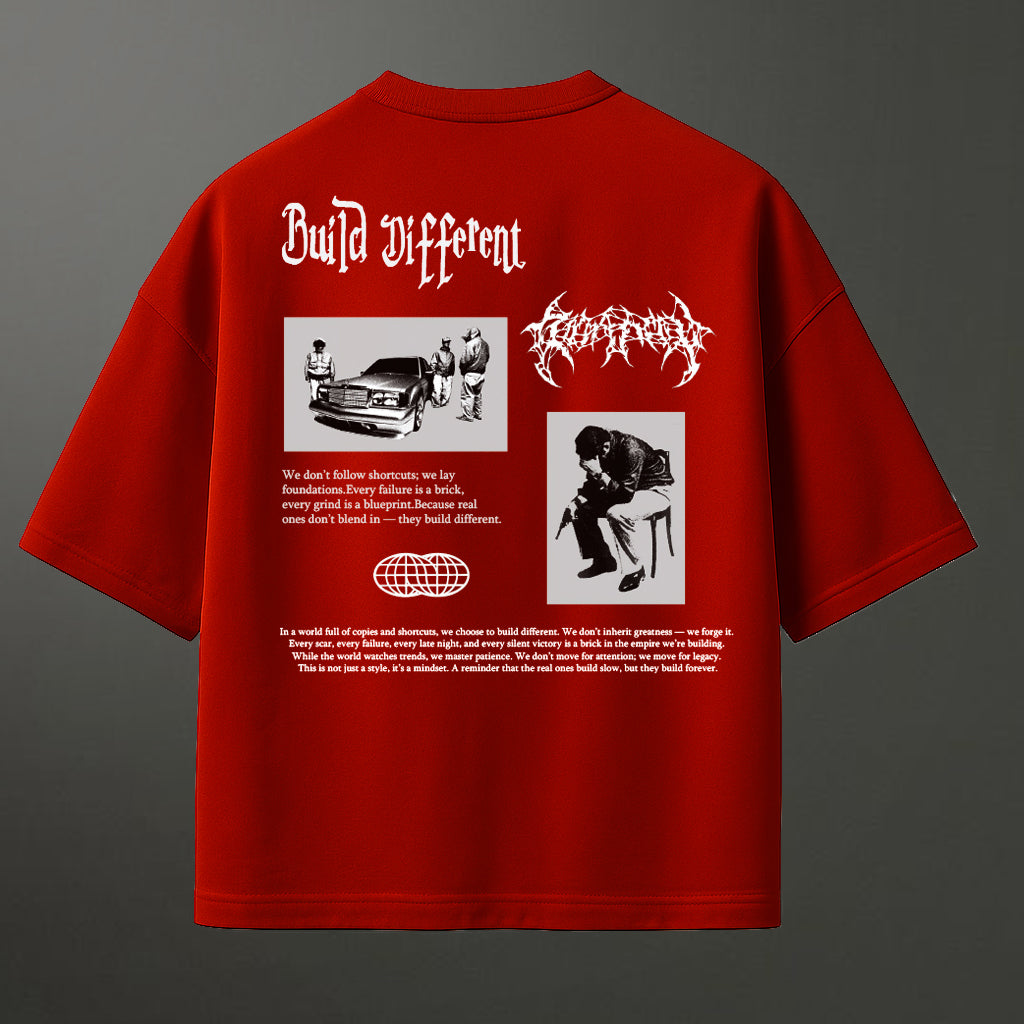 ✅Bold Graphic Print: Motivational “Build Different” design with unique artwork